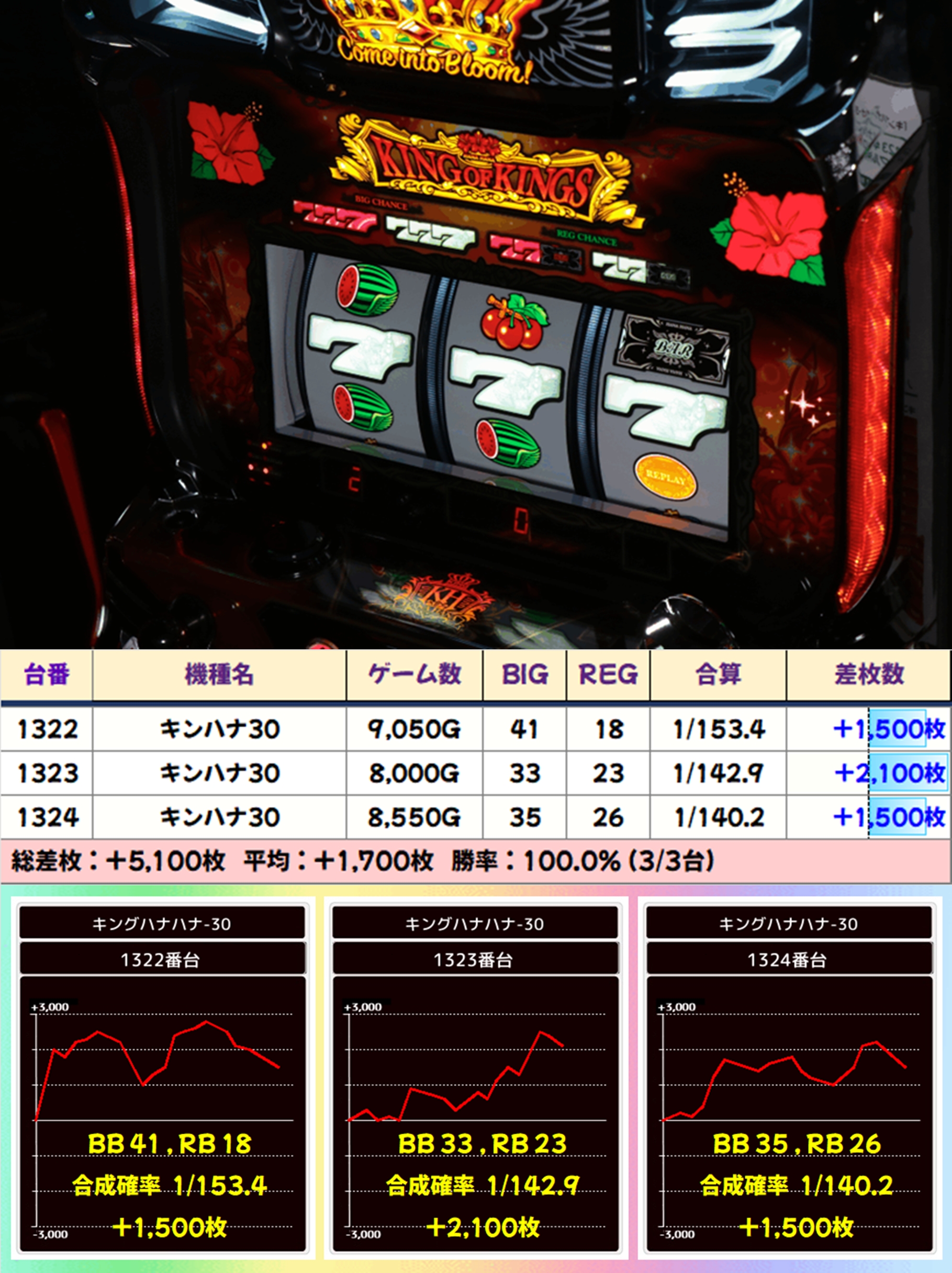 【3台並び】キンハナ30(1322-1324番台)→平均+1,700枚
