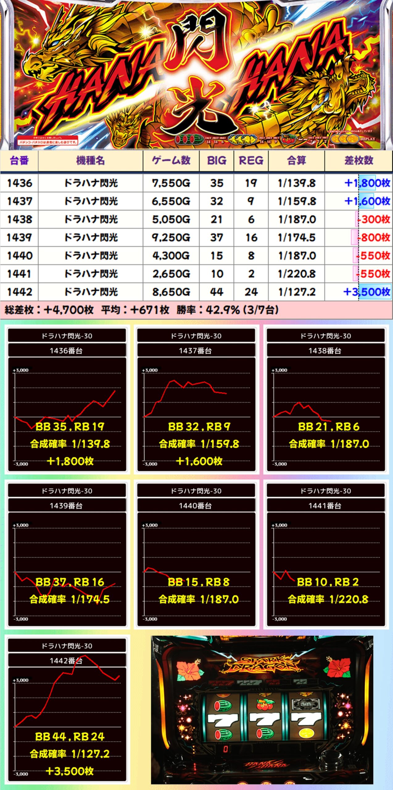 【全系列】ドラハナ閃光(1436-1442番台)→平均+671枚