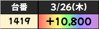 初代からは+10800枚の万枚オーバーの爆発台が出現!なお、不発の台もありましたが、高設定示唆の金枠が複数出現したという情報もあったようでした!