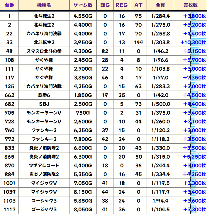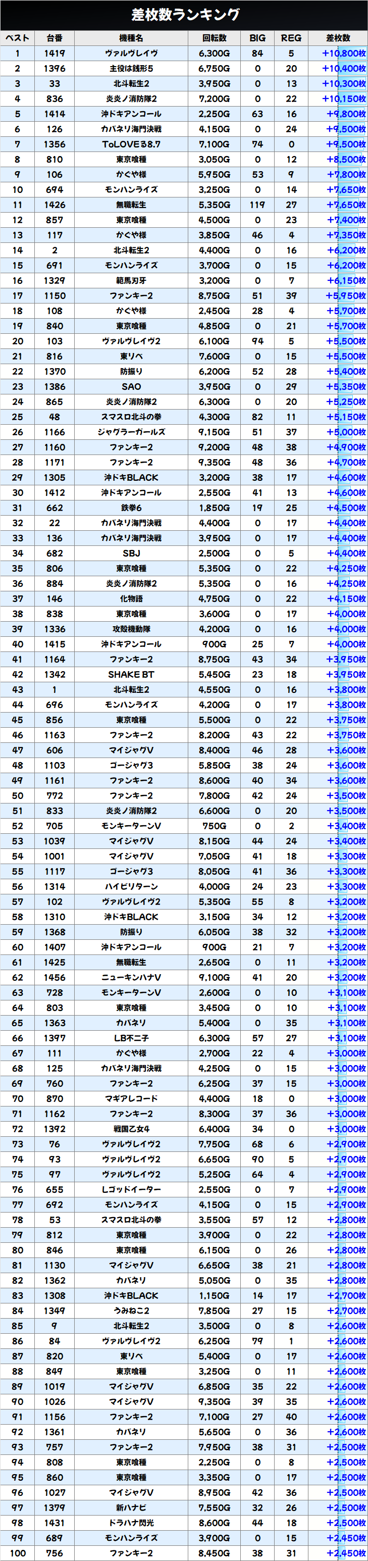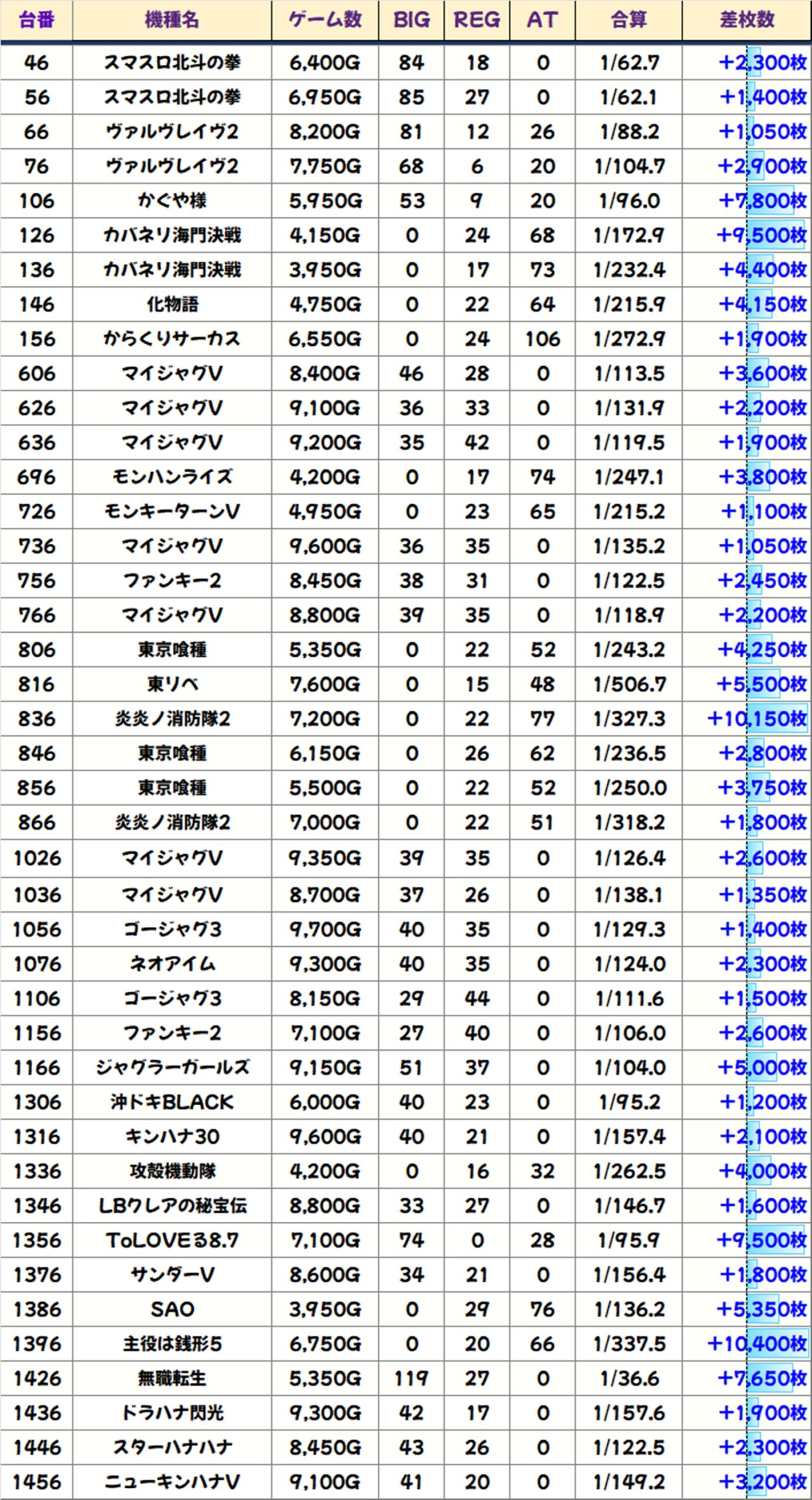 各機種の優秀台をピックアップしますのでデータを確認してみましょう!