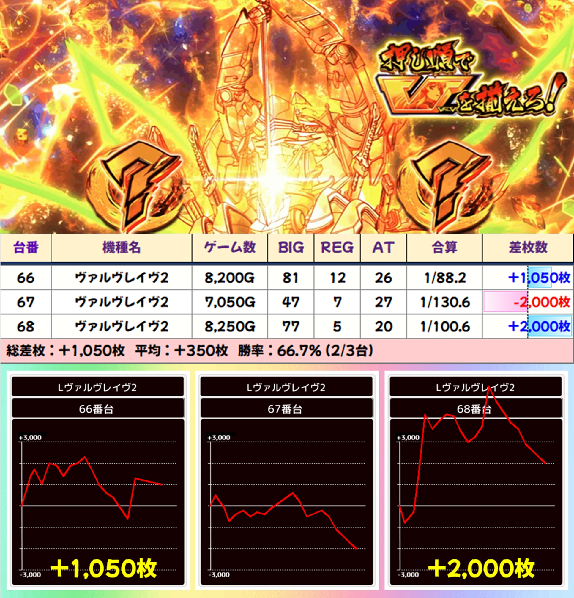 【3台並び】ヴァルヴレイヴ2(66-68番台)→平均+350枚