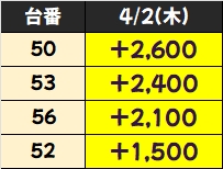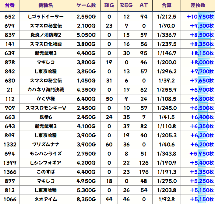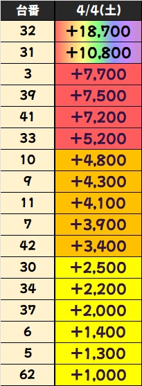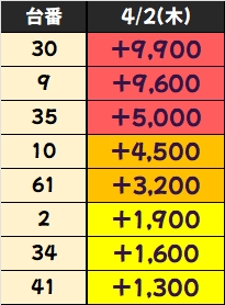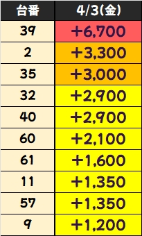 優秀台(+1000枚超)をピックアップしていきますので確認していきましょう!
