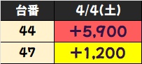 末尾ゾロ目以外のもう1本の末尾の仕掛けは末尾⑦(4月4日→4×4=16→1+6=⑦!?)だった模様で、平均+1527枚&勝率も約7割と素晴らしすぎる結果に!