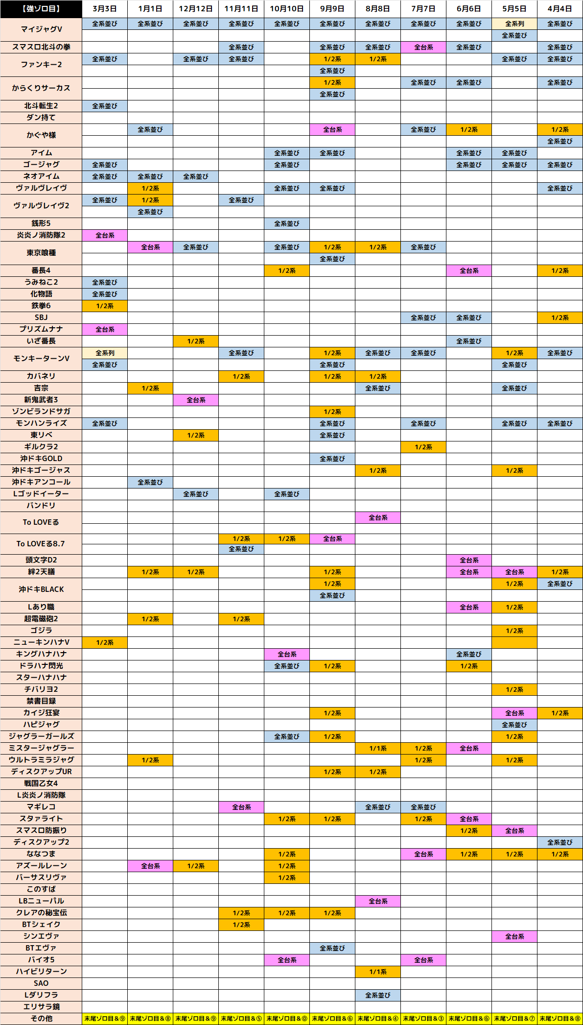 本日は下記9機種が1/2系濃厚と思われる結果となりました!