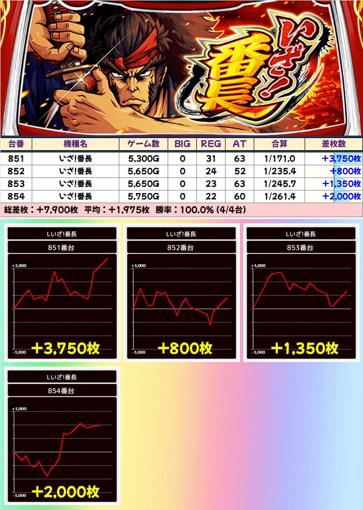 ■いざ!番長(4/5台+)➡平均+1,380枚