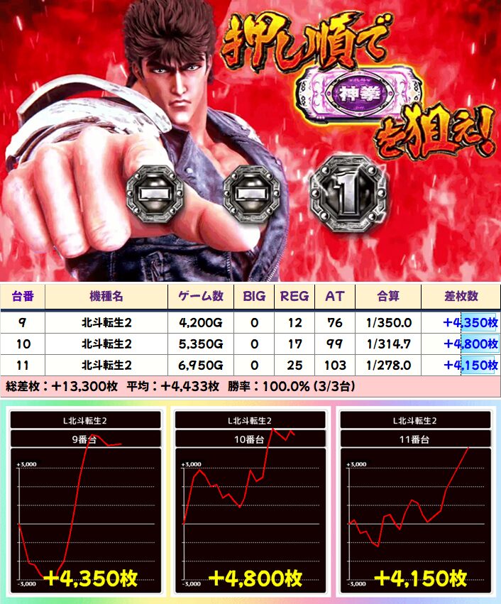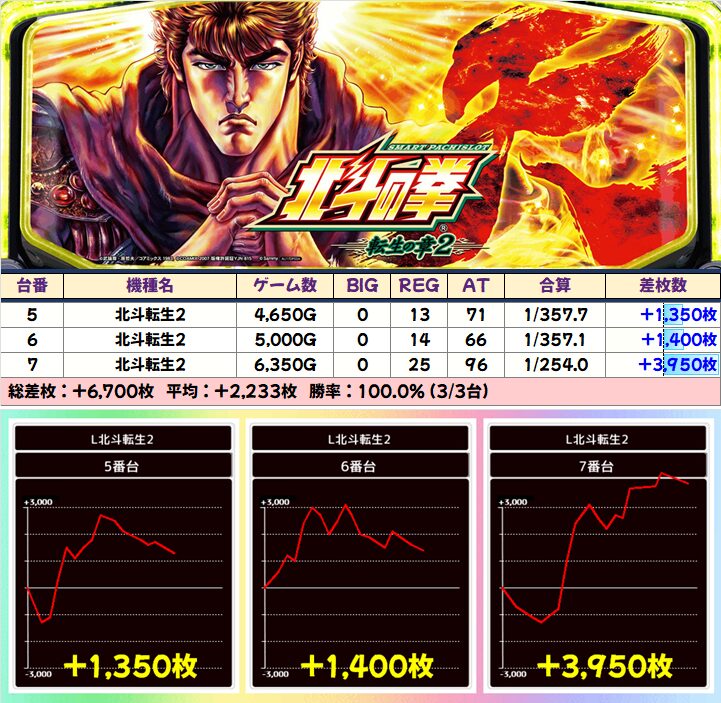 「スマスロ北斗の拳」からは+6000枚クラスの優秀台を確認!