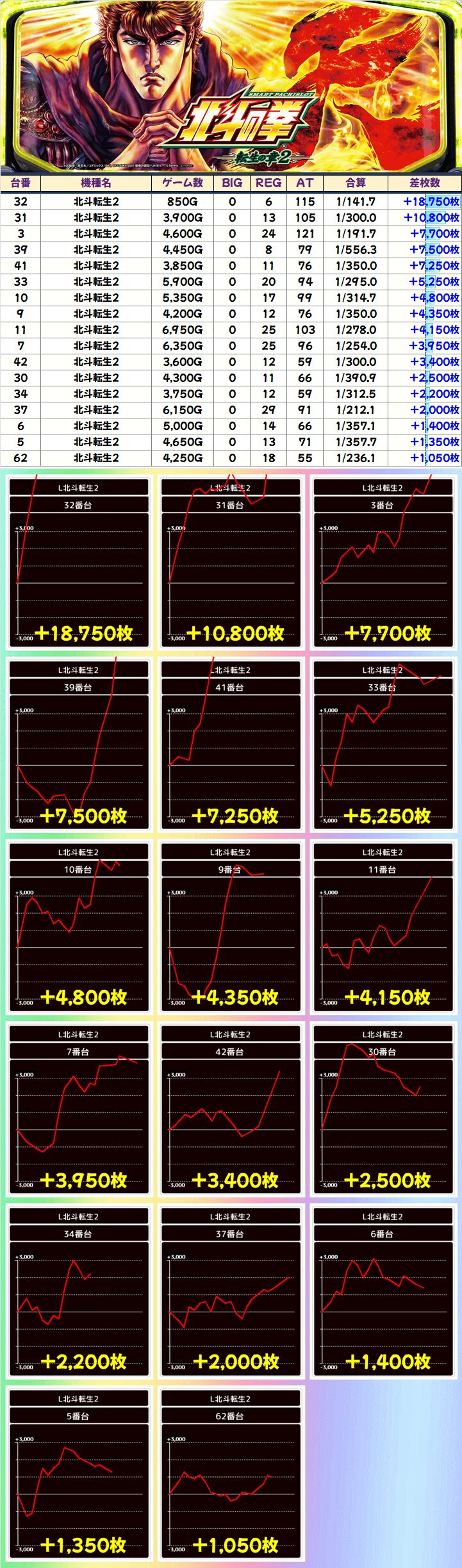 ■北斗転生2(18/36台+)➡平均+1,179枚