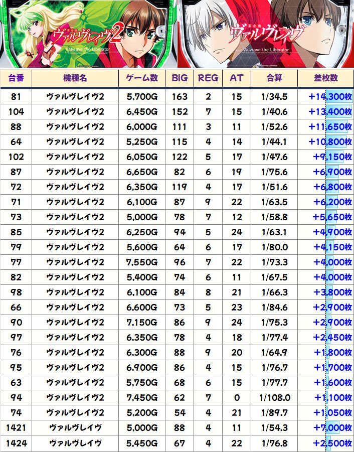 ■ヴァルヴレイヴ2(25/40台+)➡平均+2,128枚