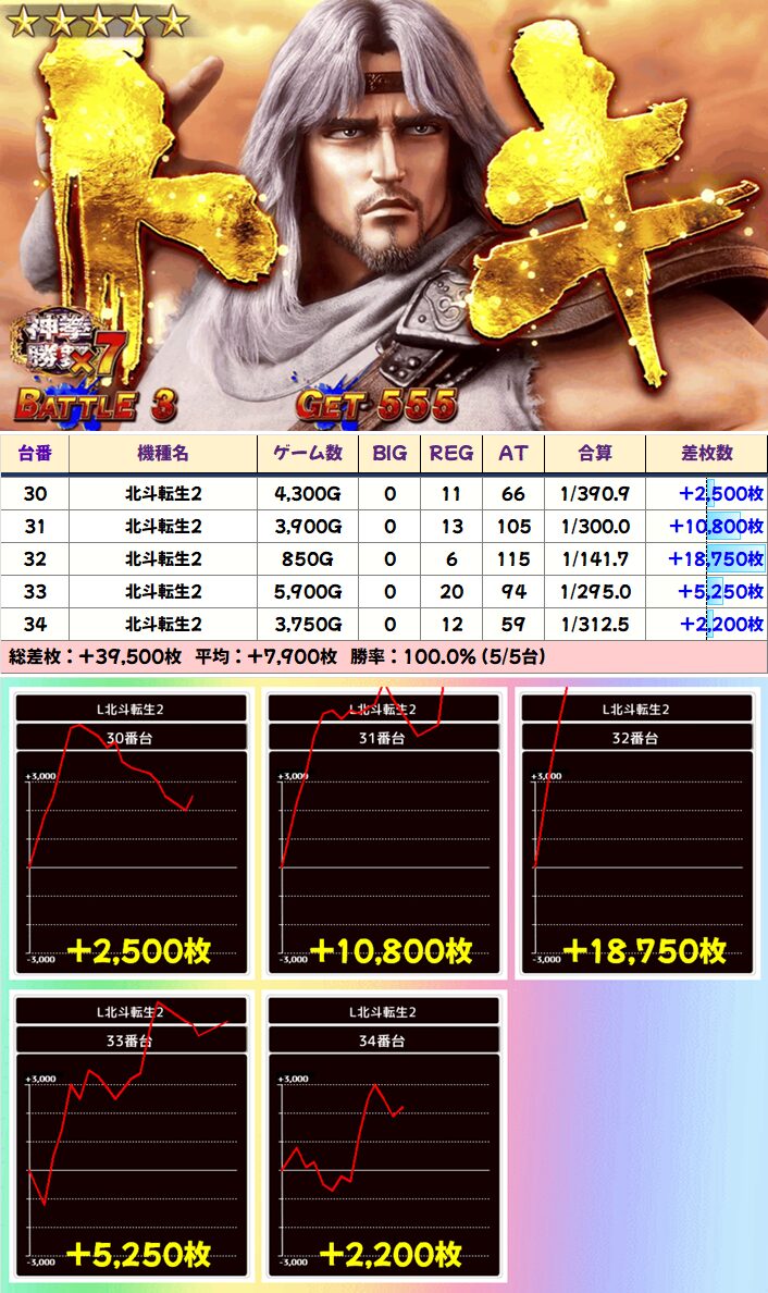 前述した通り1/2系の「北斗転生2」は圧巻の結果に!
