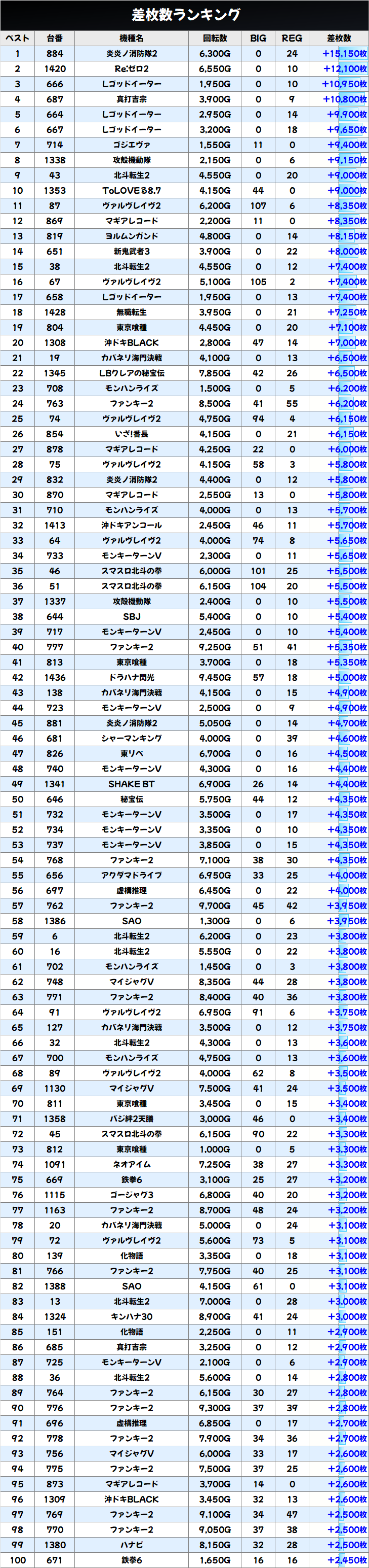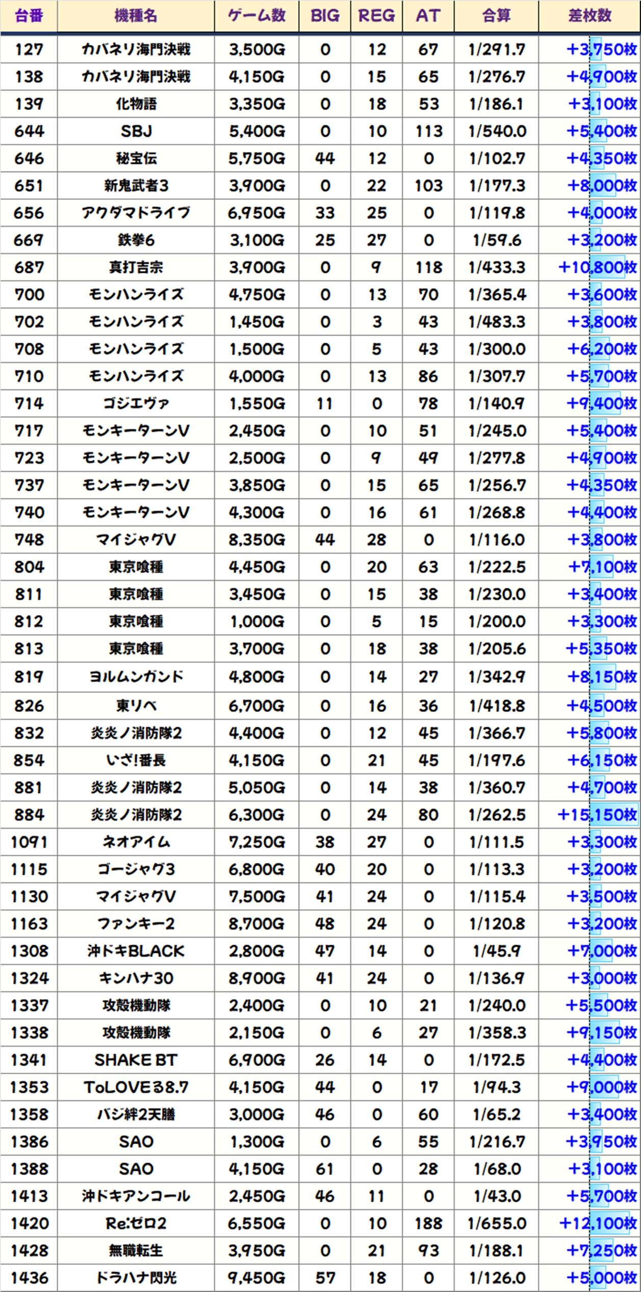 優秀台(+1000枚超)をピックアップしていきますので確認していきましょう!