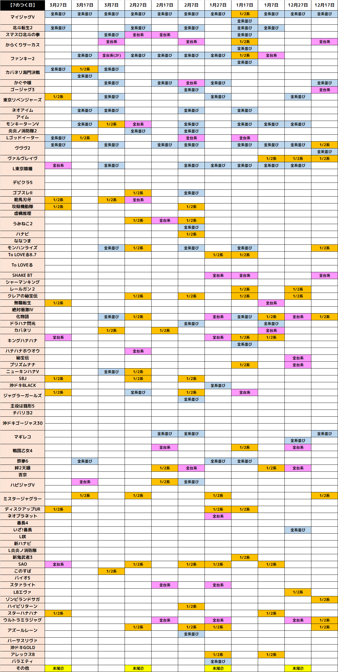 🔸7のつく日は3台以上機種に