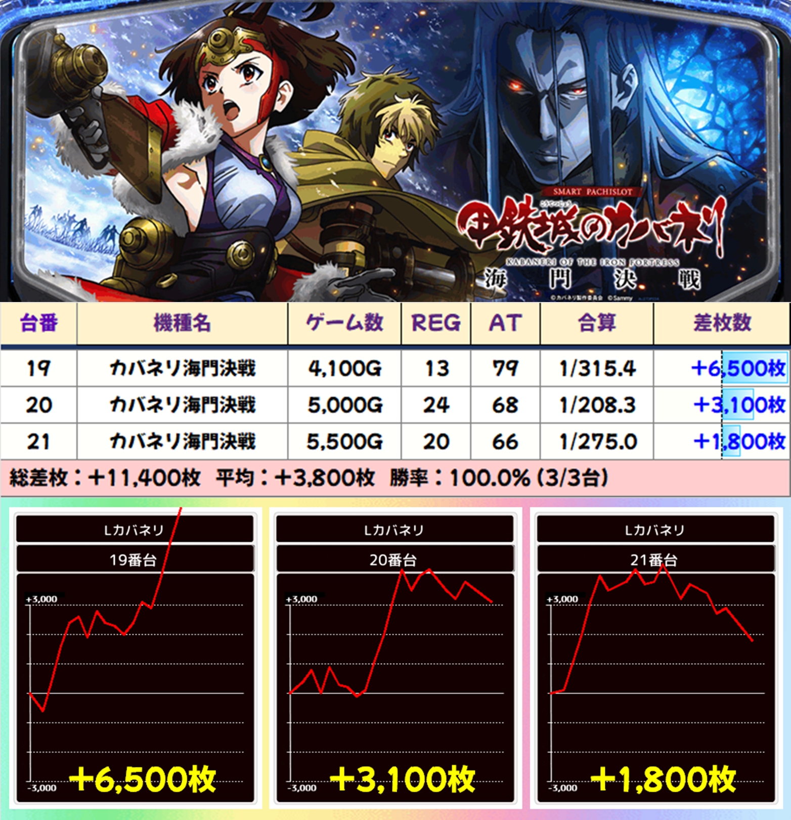 いずれの機種からも優秀な出玉が出現し、トータルでも好成績を残してくれました!