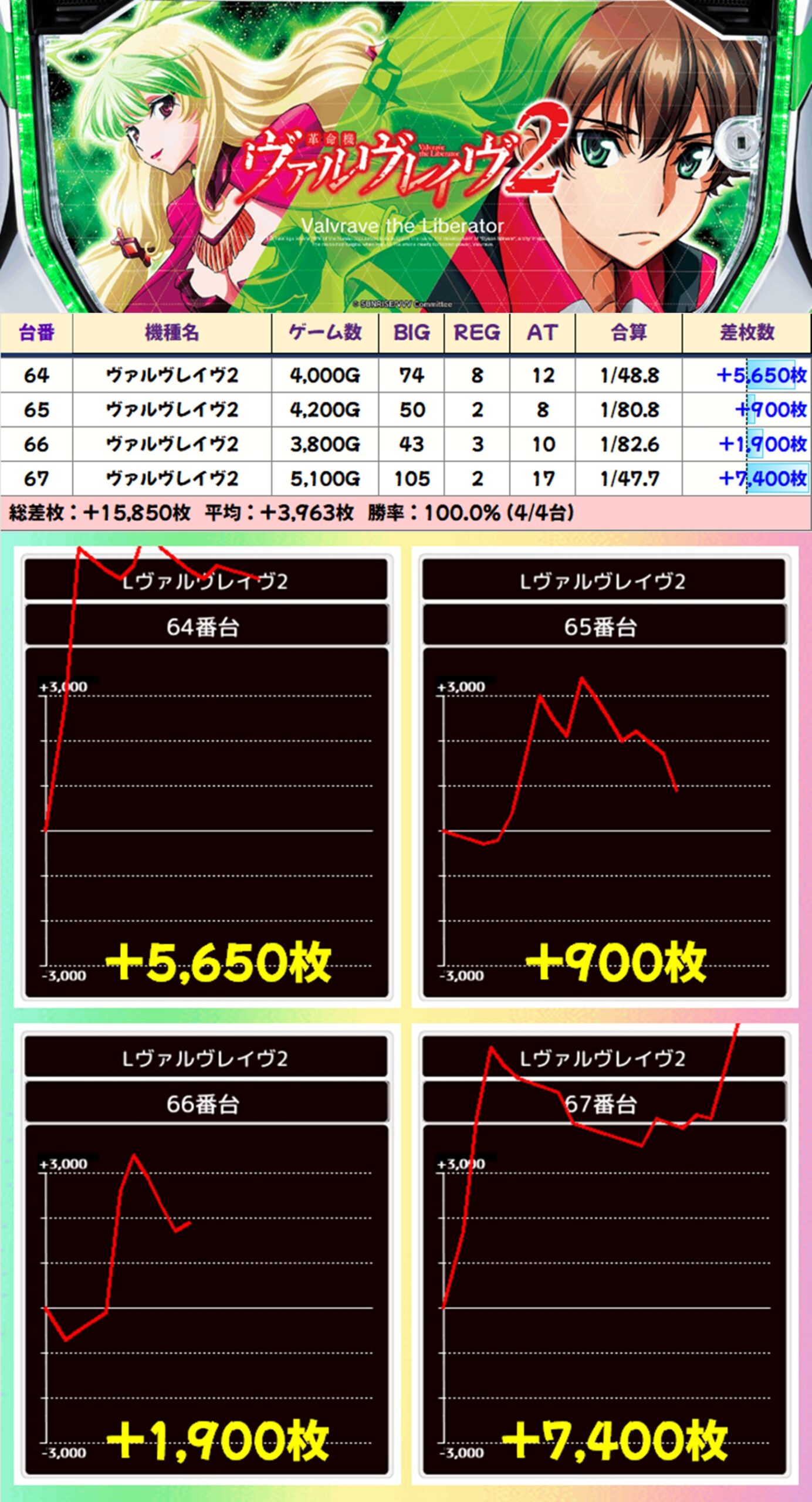 【4台並び】ヴァルヴレイヴ2(64-67番台)→平均+3,963枚