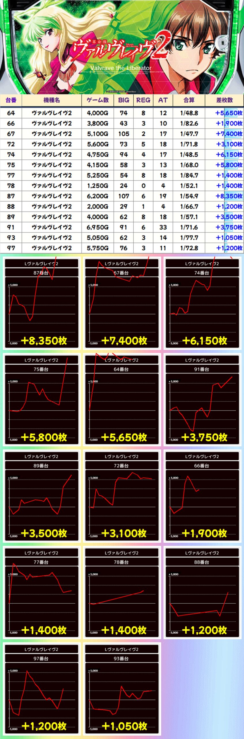 【4台並び】ヴァルヴレイヴ2(74-77番台)→平均+3,463枚