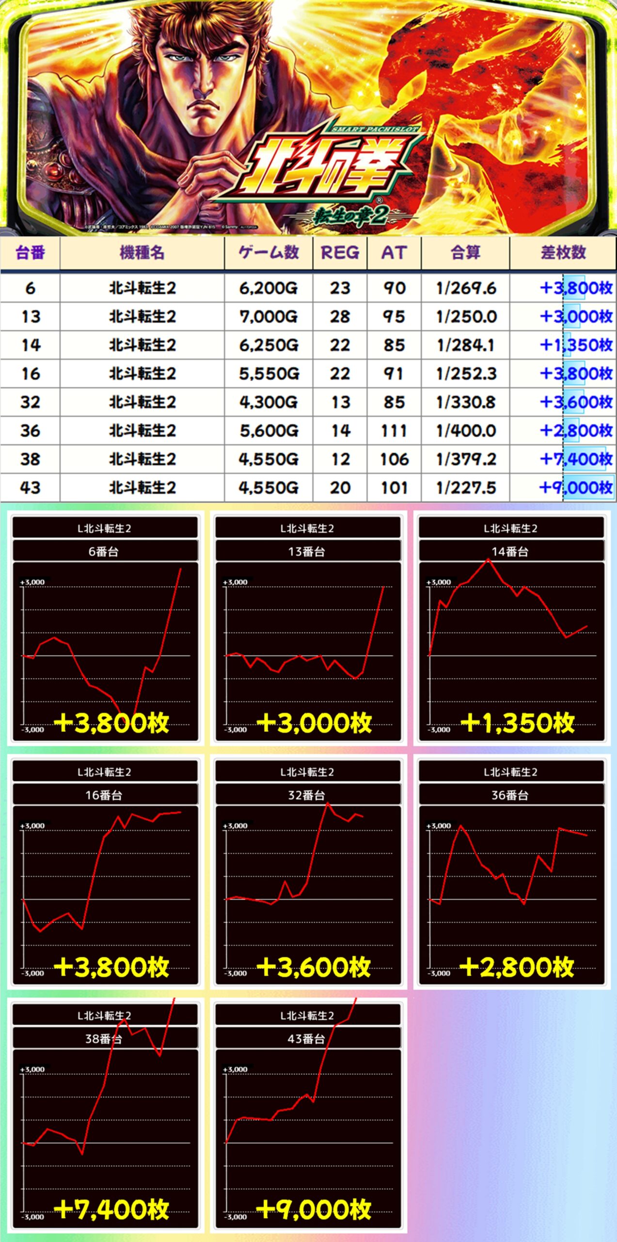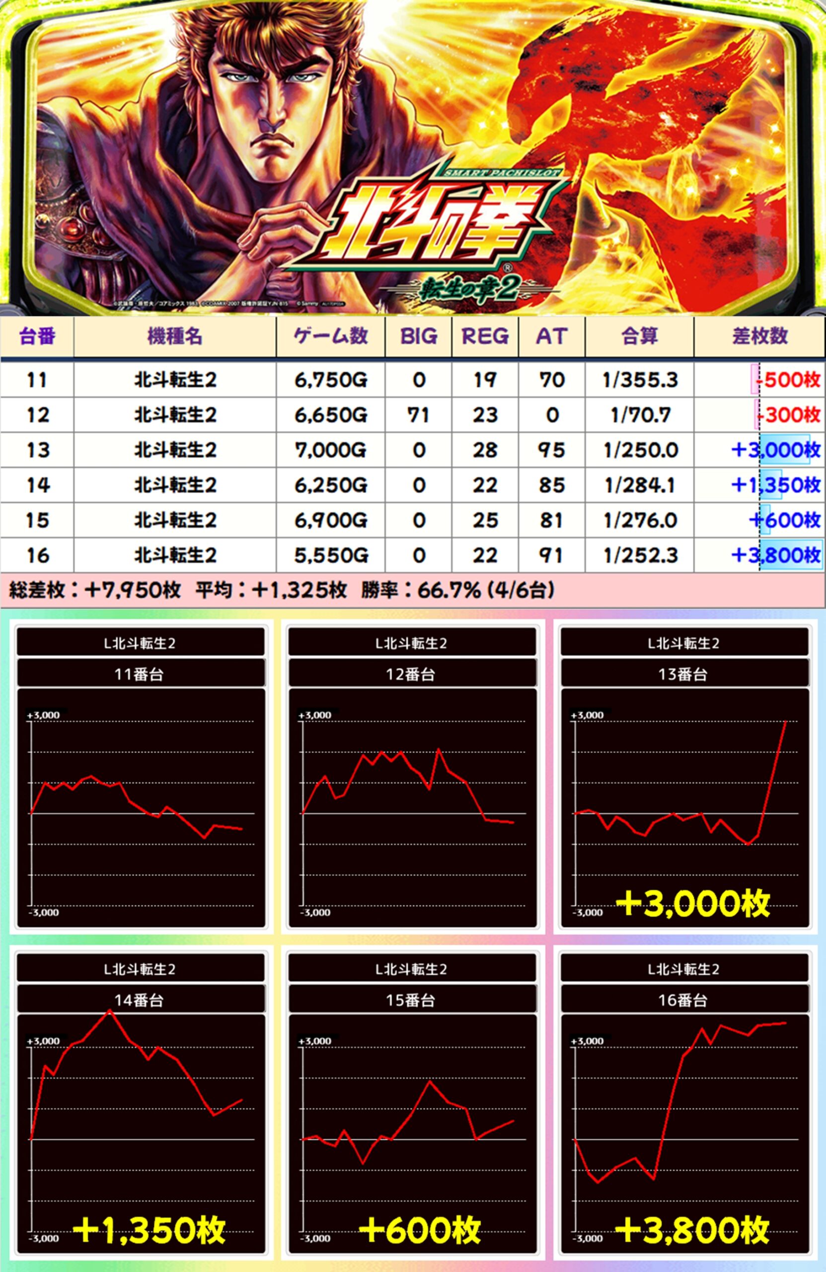 【全系列】北斗転生2(11-16番台)→平均+1,325枚