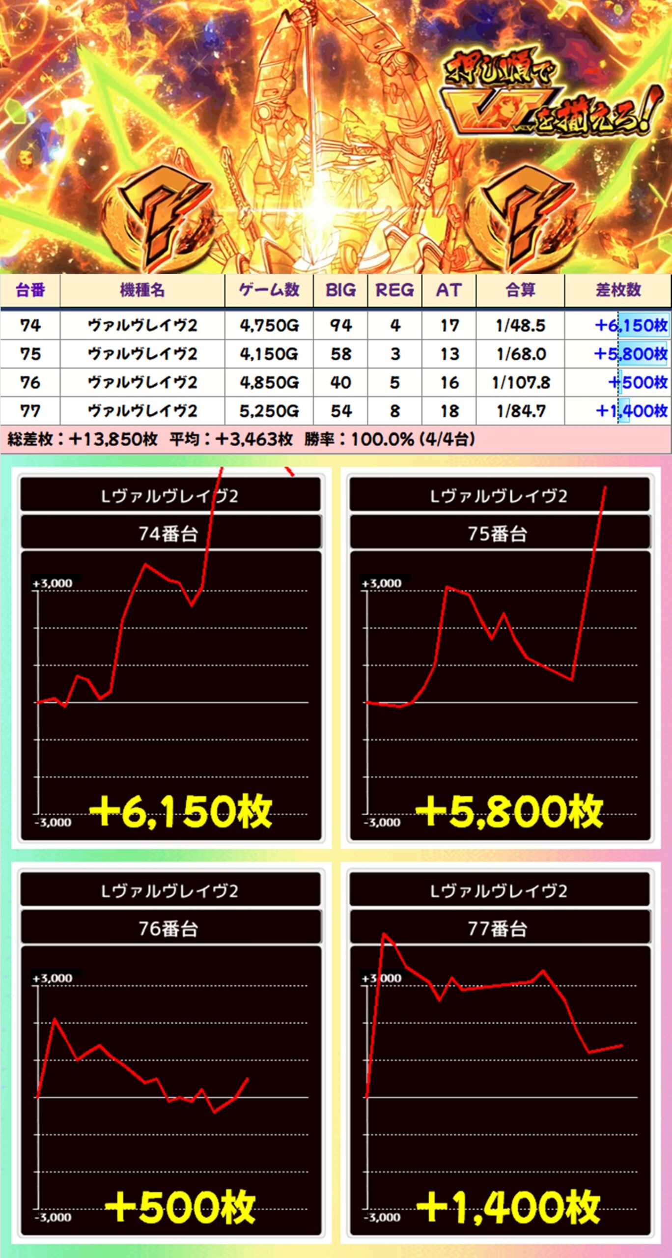 【4台並び】ヴァルヴレイヴ2(74-77番台)→平均+3,463枚