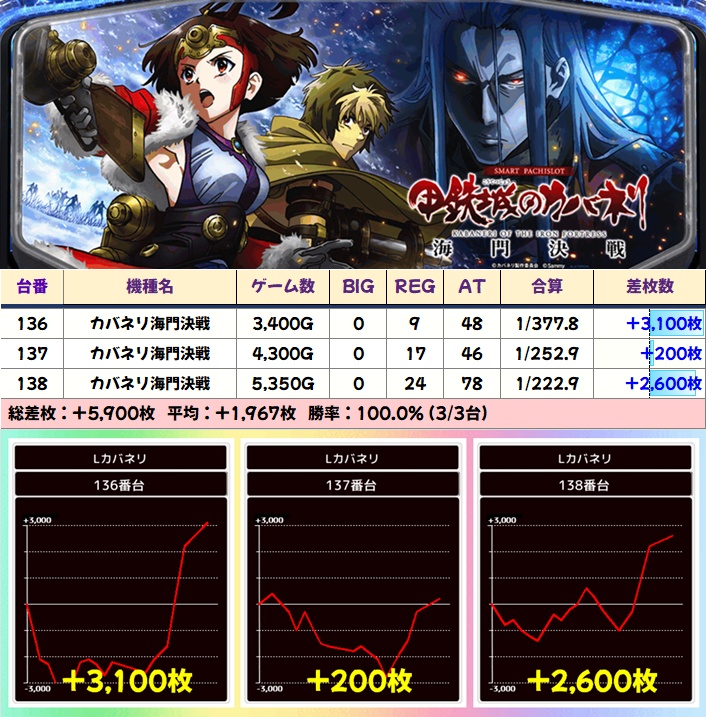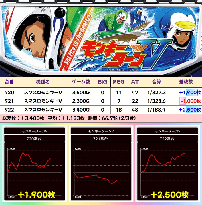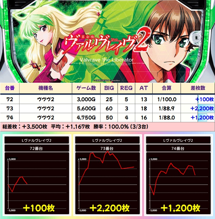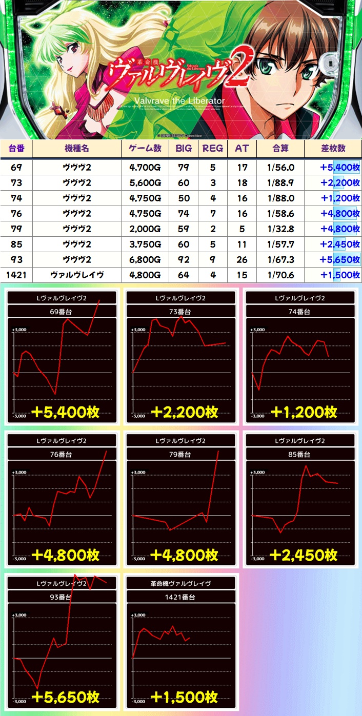 「ヴァルヴレイヴ2」は、5000枚を筆頭に5台以上もの台が+2000枚オーバー!