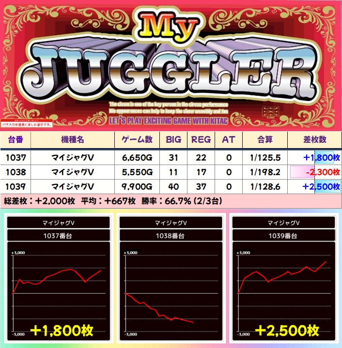 ジャグやハナハナシリーズにも並び多数!今回はマイジャグから特に大量の並びが出現しました!末尾39に絡んでいる並びも複数あるので、やはり39の日は末尾39付近から狙いたい
