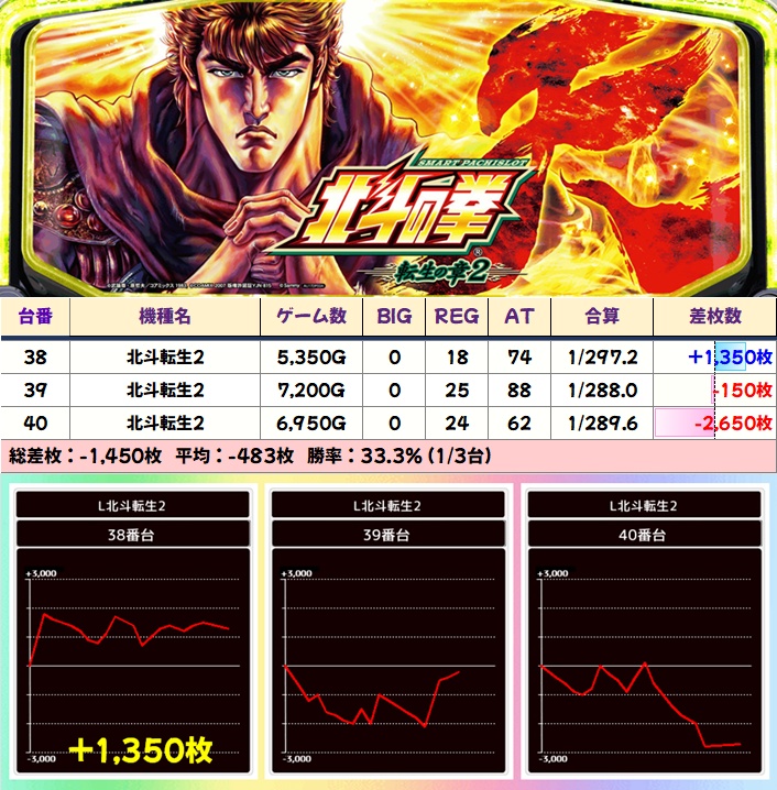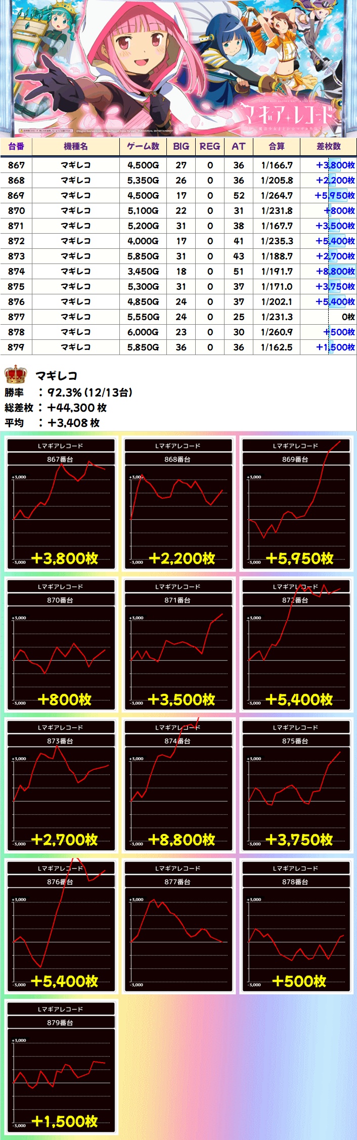 全台系は3機種あり、なんと全機種大きなマイナス台はなし!!マギレコからは5000枚超が4台も出現し、ノーマル系はしっかりと粘られていました!
