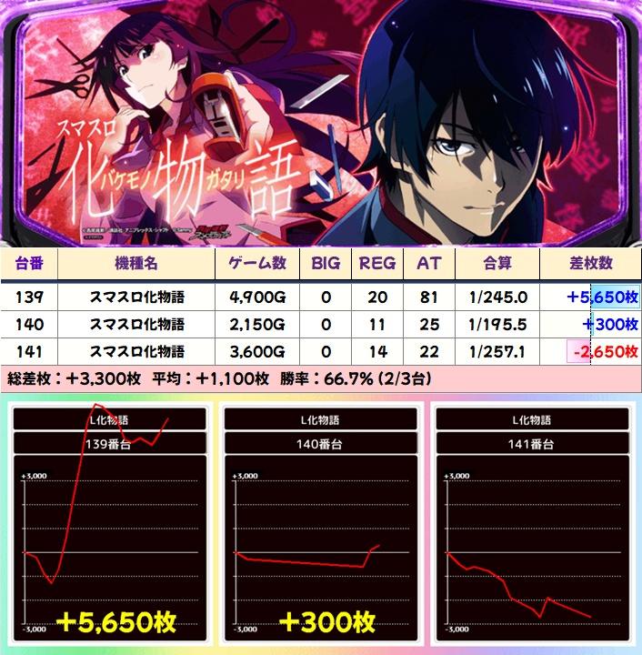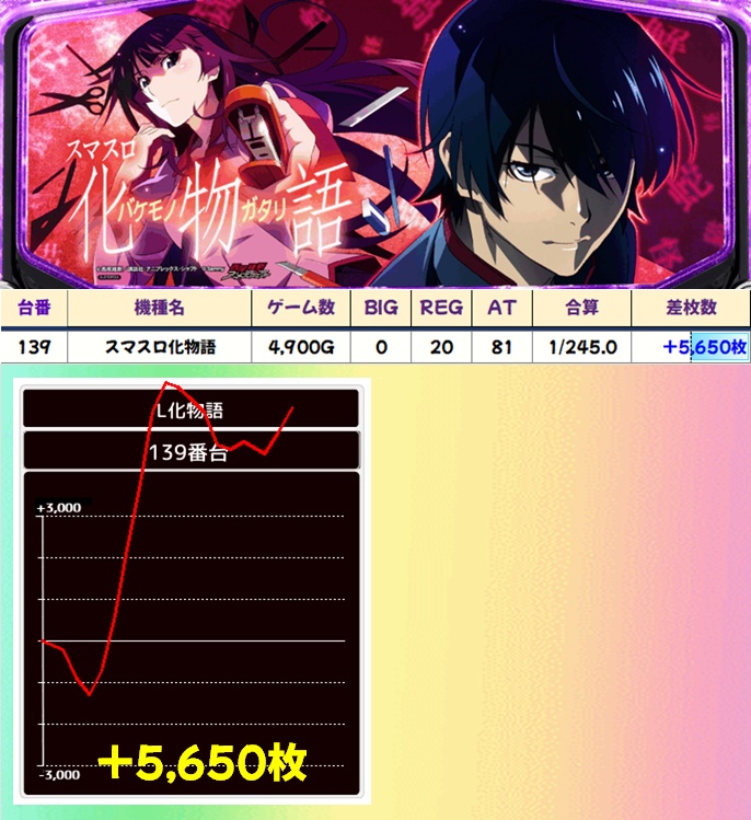 化物語にも5000枚超の優秀台がありましたが、やや不発気味の結果に