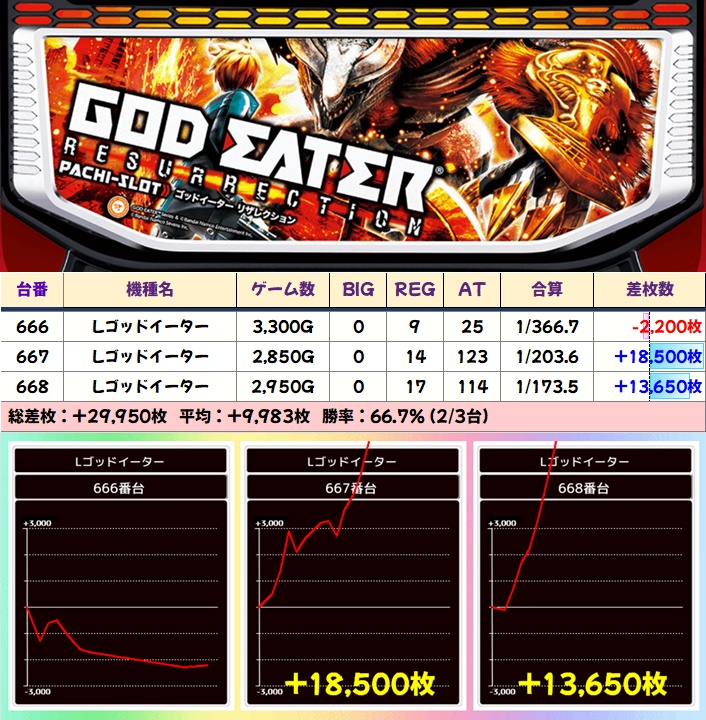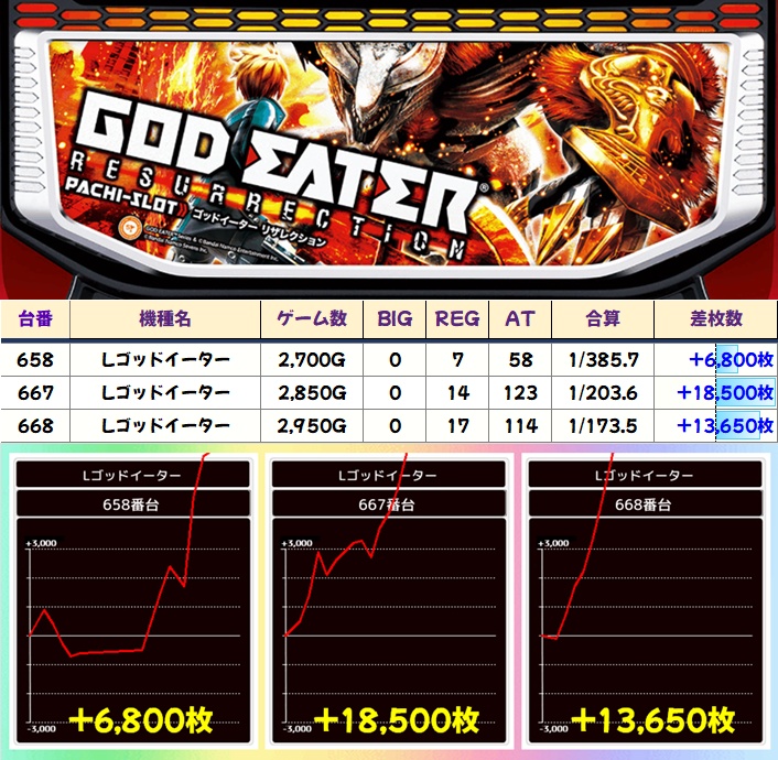 「ゴッドイーター」は優秀並びがあり万枚超2台!