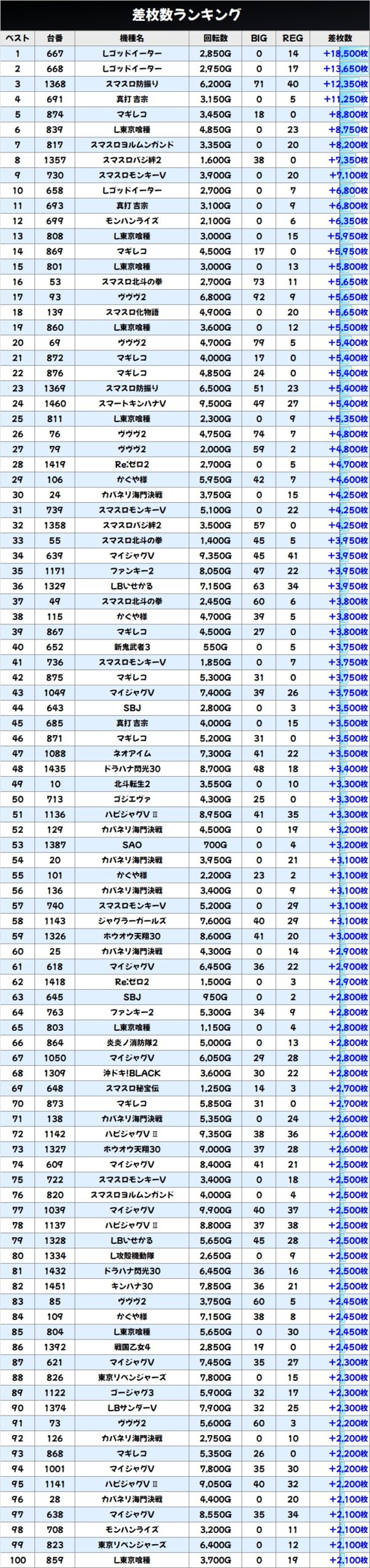 優秀台(+1000枚超)をピックアップしていきますので確認していきましょう!