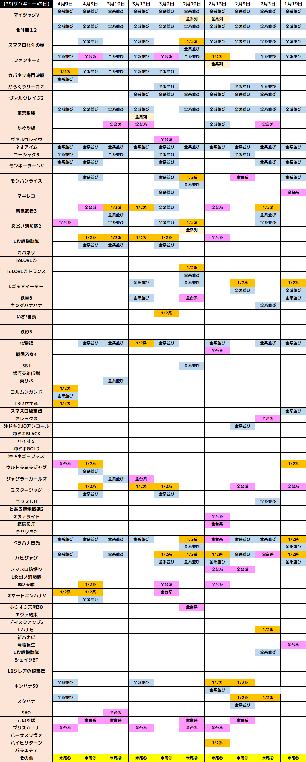また、3台以上の並びが大量に出現する日でもあるので、末尾39を絡めた付近の台も狙い目となります