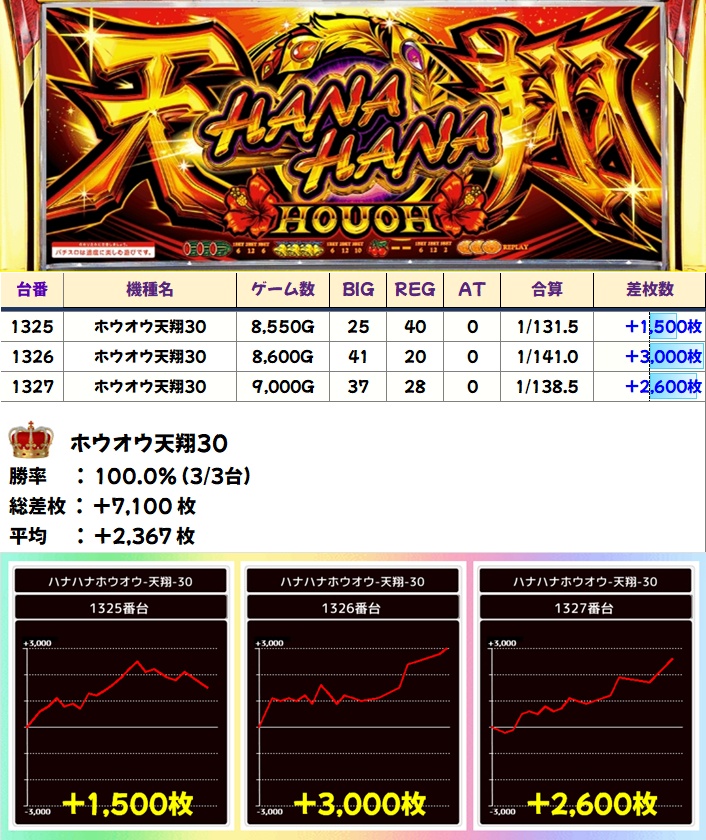 ホウオウ天翔(3/3台+)➡平均+2,367枚