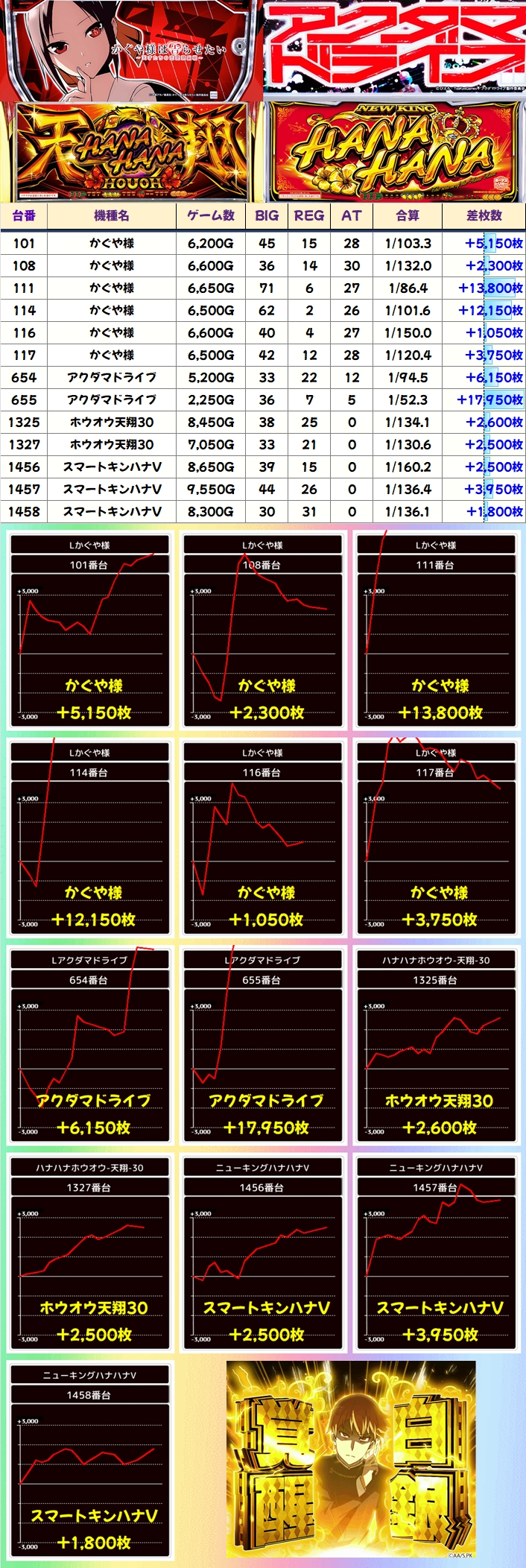 ■かぐや様(8/15台+)→平均+1,623枚
