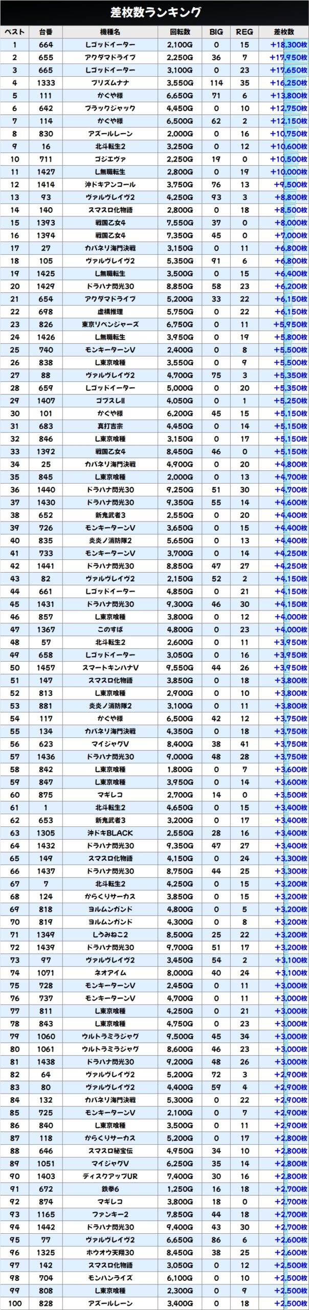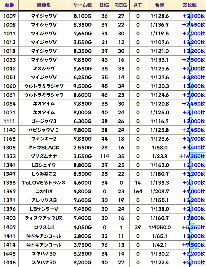 優秀台(+1000枚超)をピックアップしていきますので確認していきましょう!