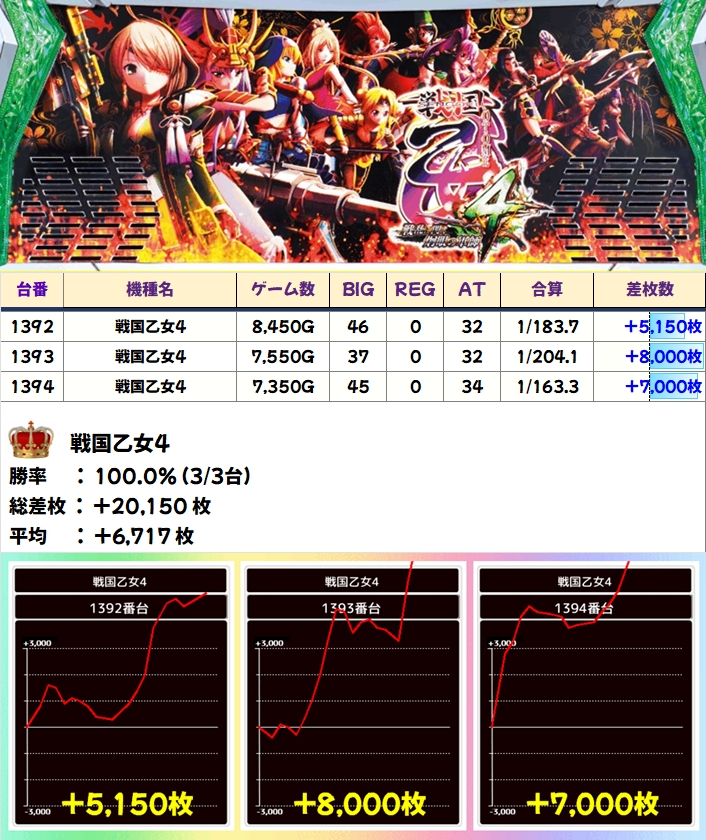 【全台系濃厚】戦国乙女4(3/3台+)→平均+6,717枚