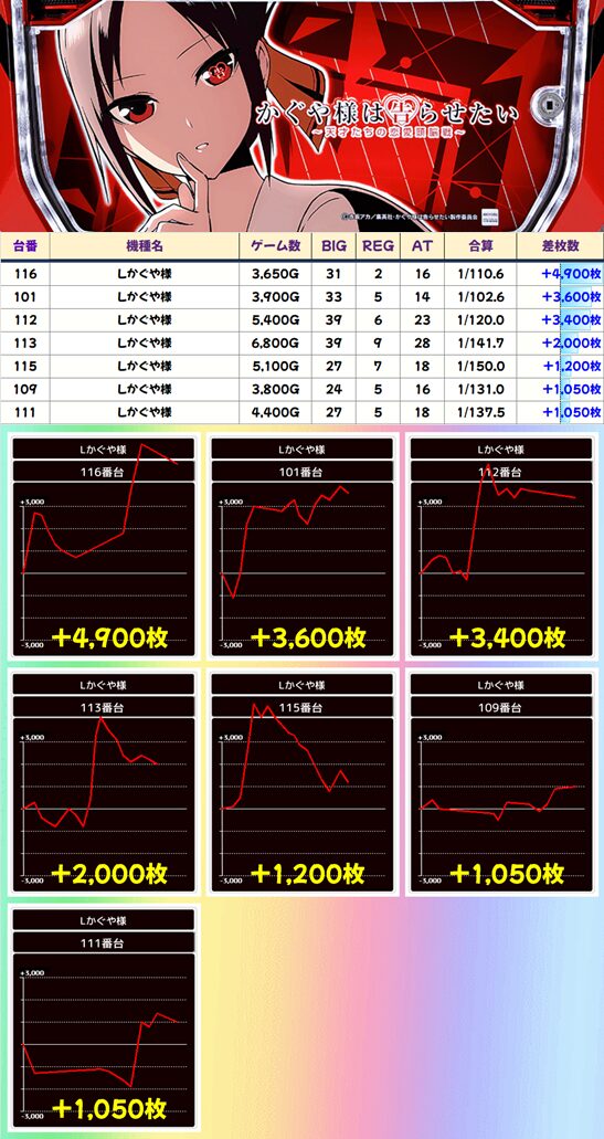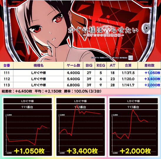 【3台並び】111番台〜113番台 かぐや様は告らせたい▶平均+2,150枚