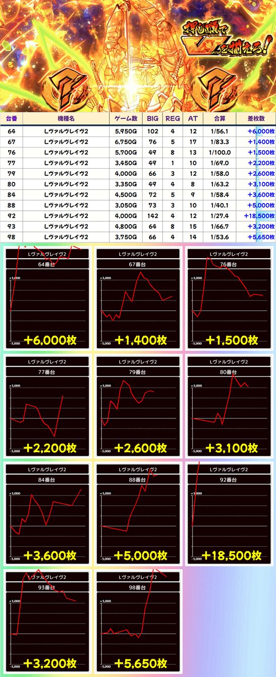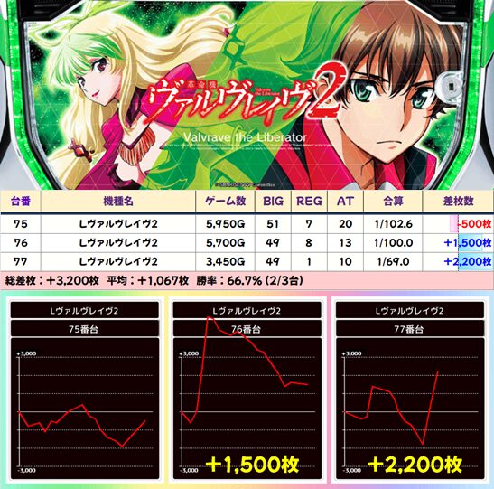 【3台並び】75番台〜77番台 ヴァルヴレイヴ2▶平均+1,067枚