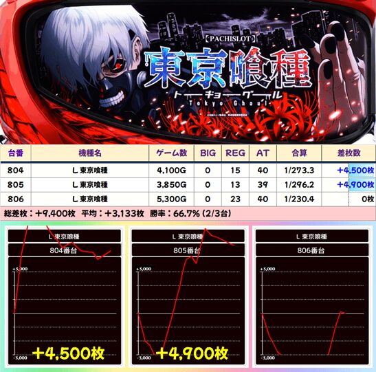 【3台並び】804番台〜806番台 東京喰種▶平均+3,133枚