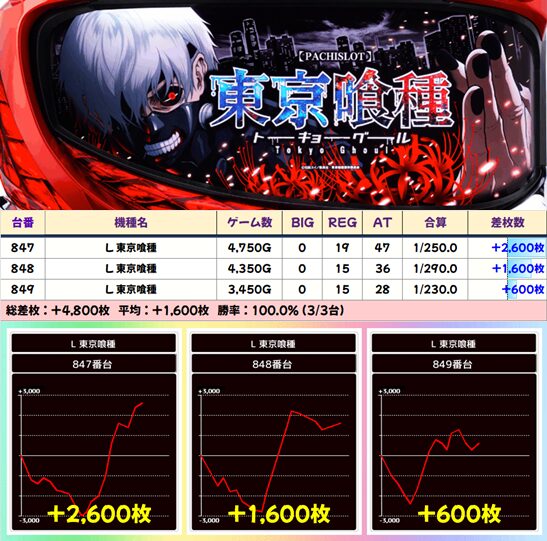 【3台並び】847番台〜849番台 東京喰種▶平均+1,600枚