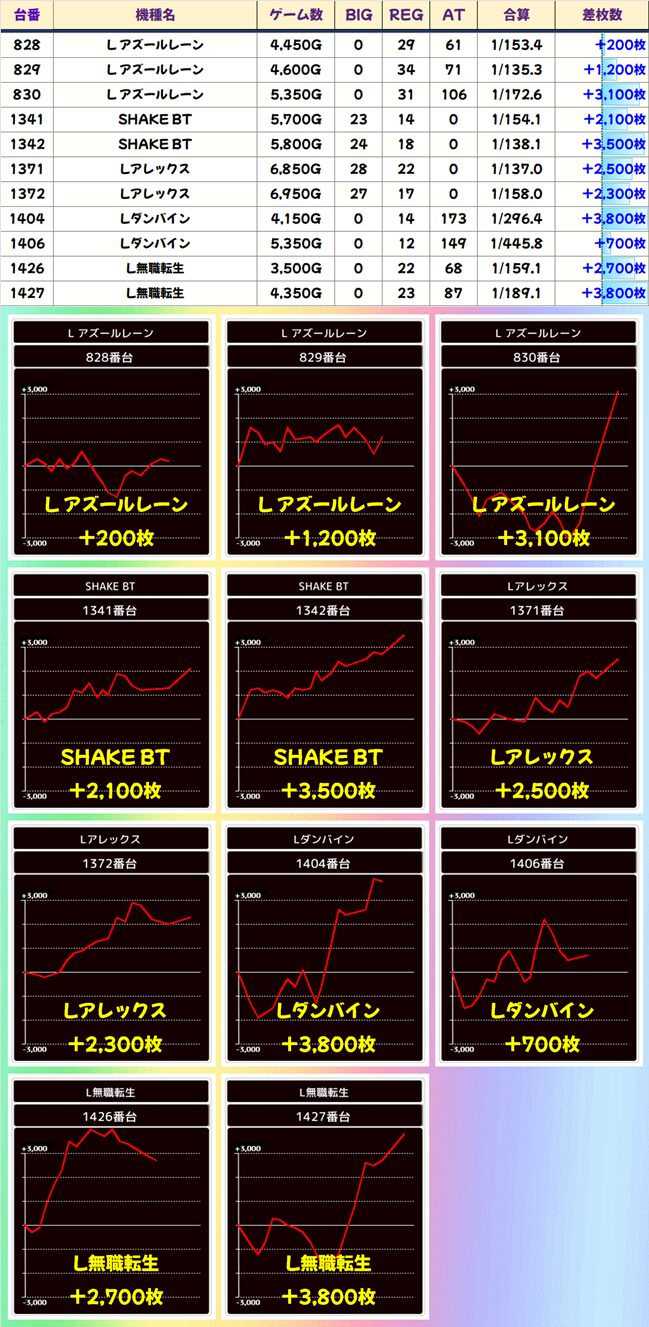各機種の優秀台をピックアップしますので、データを確認してみましょう!