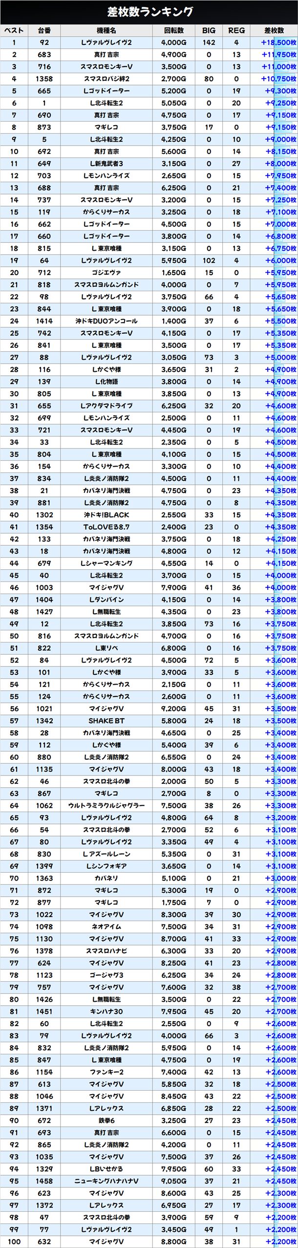 差枚数ランキング&島図をチェック!
