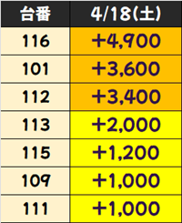 4月18日(土)|エスパス新宿歌舞伎町|土曜日は優秀機種や優秀台が多数アリ!高配分機種が5機種に加え、優秀並びも随所に孫座!さらに単品優秀台もアリ