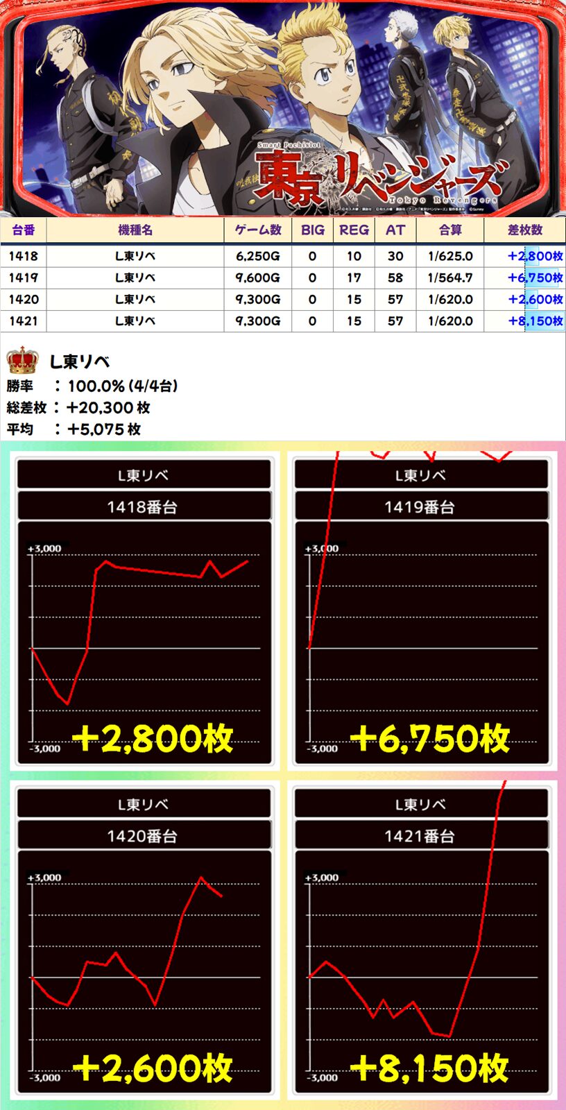 L東リベ (4/4台+) ➡平均 +5,075枚