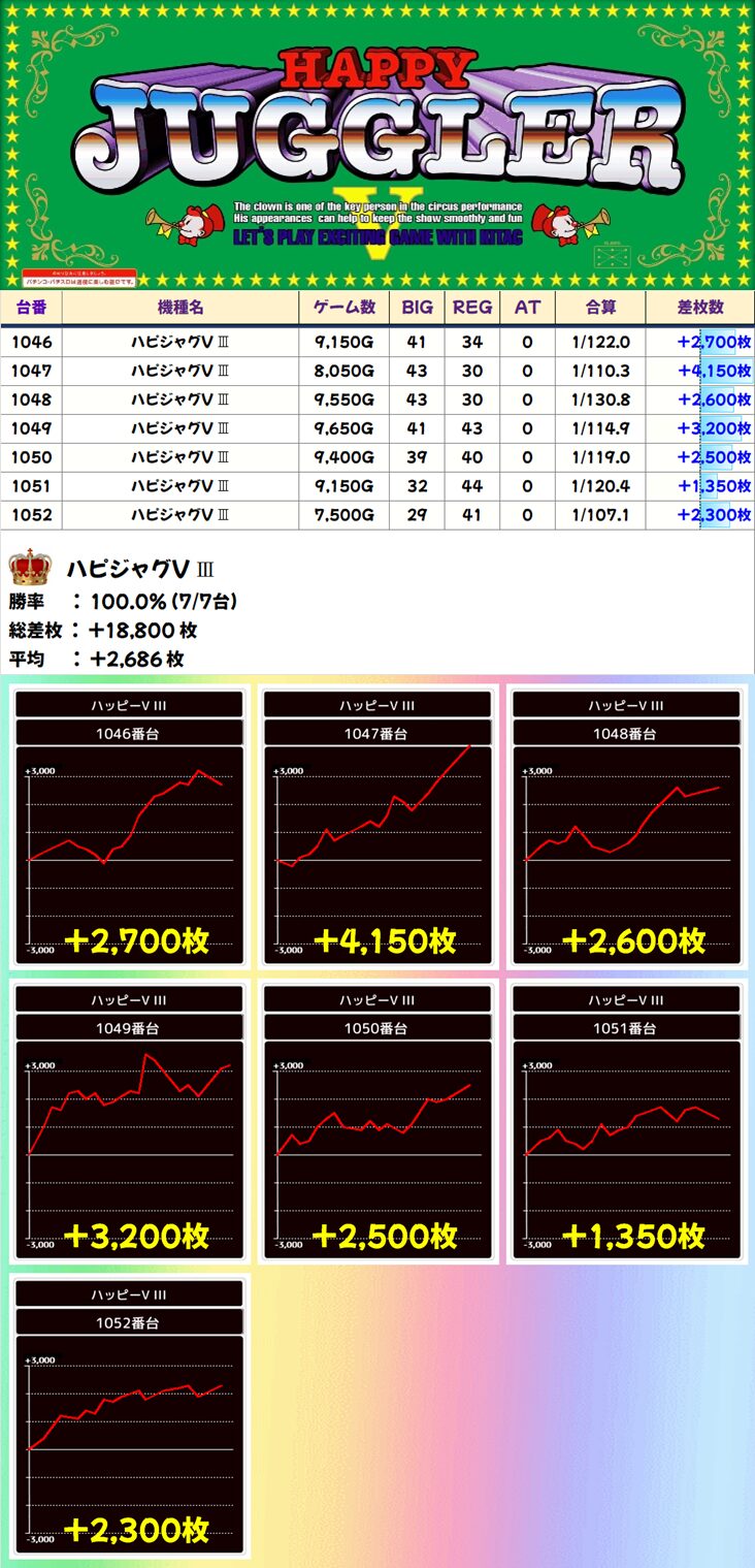 ハピジャグV Ⅲ (7/7台+) ➡平均 +2,686枚