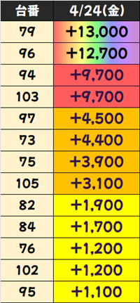 末尾㉔番台(4/9台+)→平均+906枚