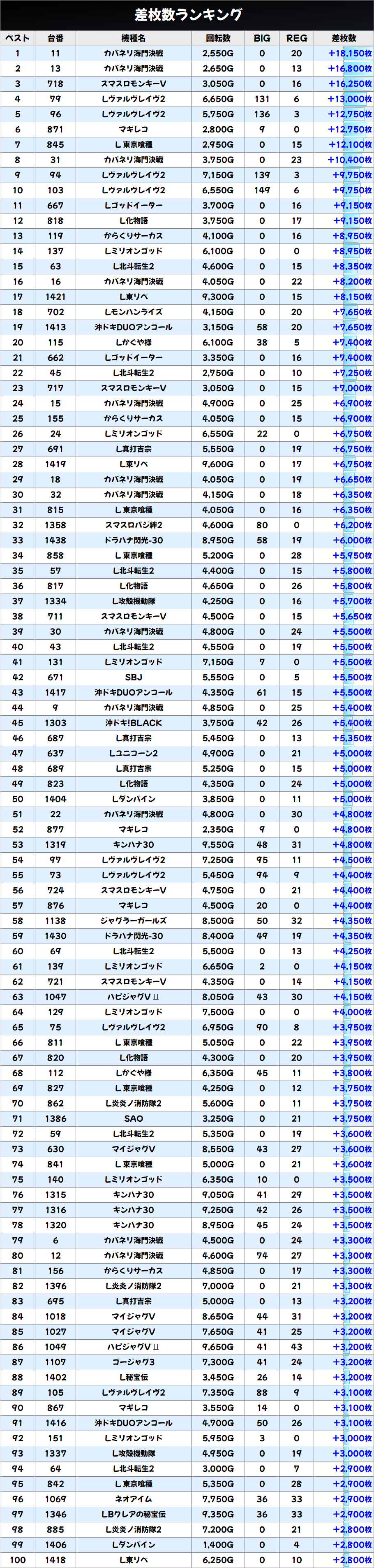 差枚数ランキング&島図をチェック!