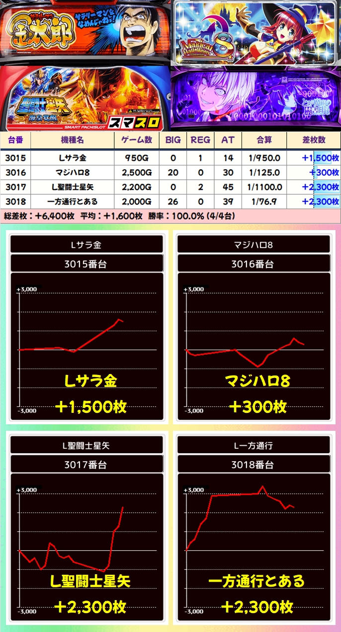 今回の結果を見てみると、4台以上の機種には機種イチ以上で単品を投入、もしくは仕掛けを用意して可能性が高そうですね。
