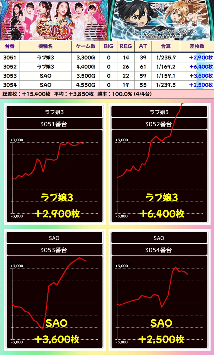 【4台並び】ラブ嬢3・SAO(3051-3054番台)
