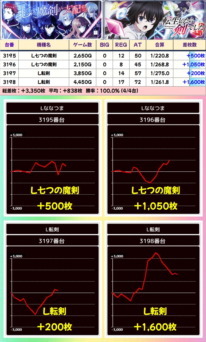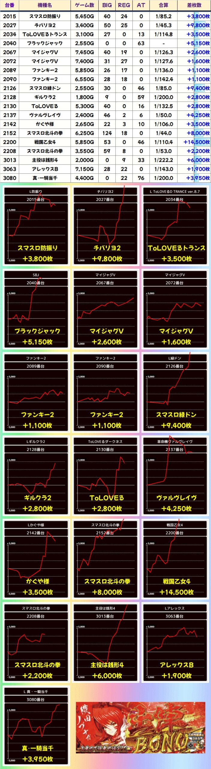 今回も少台数機種の全台系が複数用意されていたようで、人気機種の「マギレコ」などが全台系濃厚の結果に!