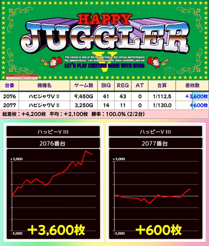 【全台系濃厚】ハピジャグV Ⅲ(2/2台+)→平均+2,100枚