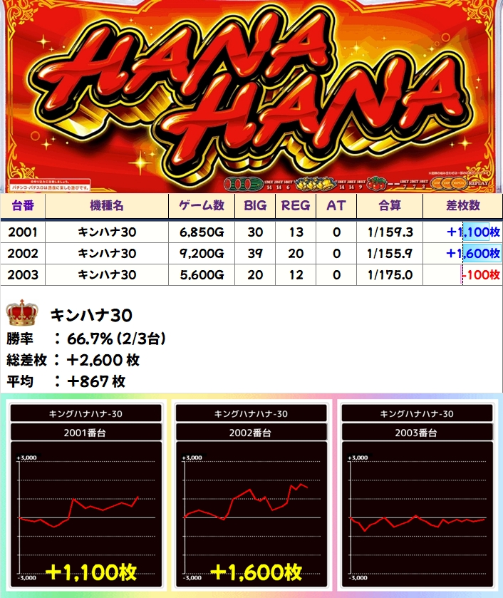 【全台系濃厚】キンハナ30(2/3台+)→平均+867枚