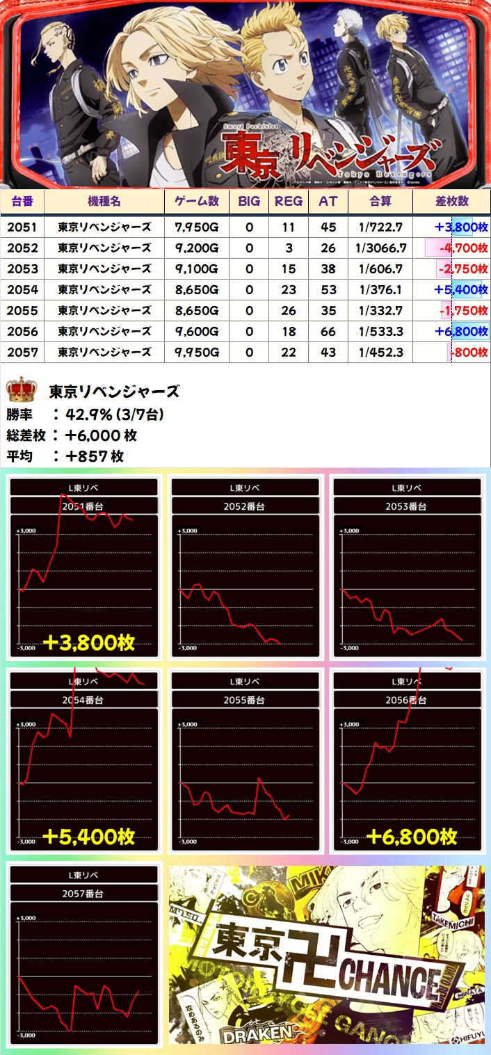 【1/2系濃厚】東京リベンジャーズ(3/7台+)→平均+857枚