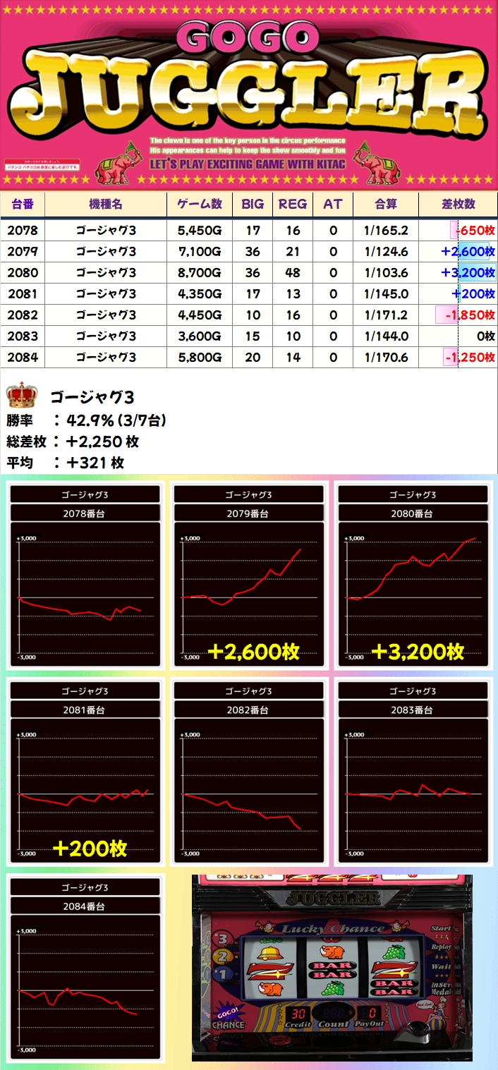 【1/2系濃厚】ゴージャグ3(3/7台+)→平均+321枚