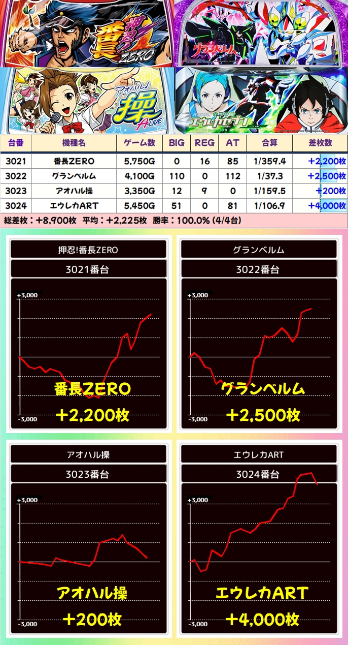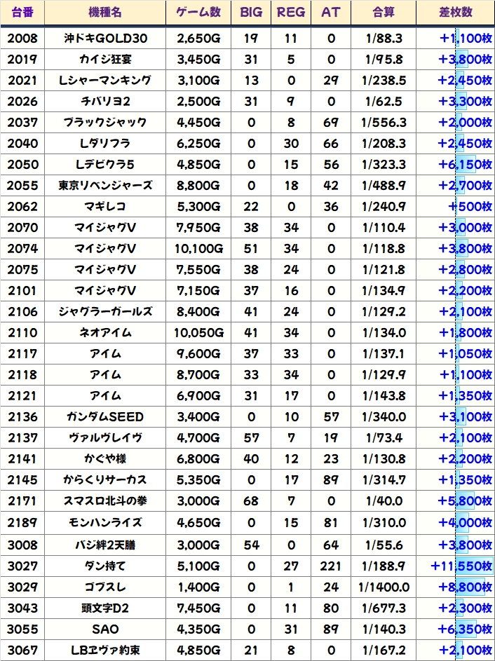 今回の結果を見てみると、4台以上の機種には機種イチ以上で単品を投入、もしくは仕掛けを用意して可能性が高そうですね。